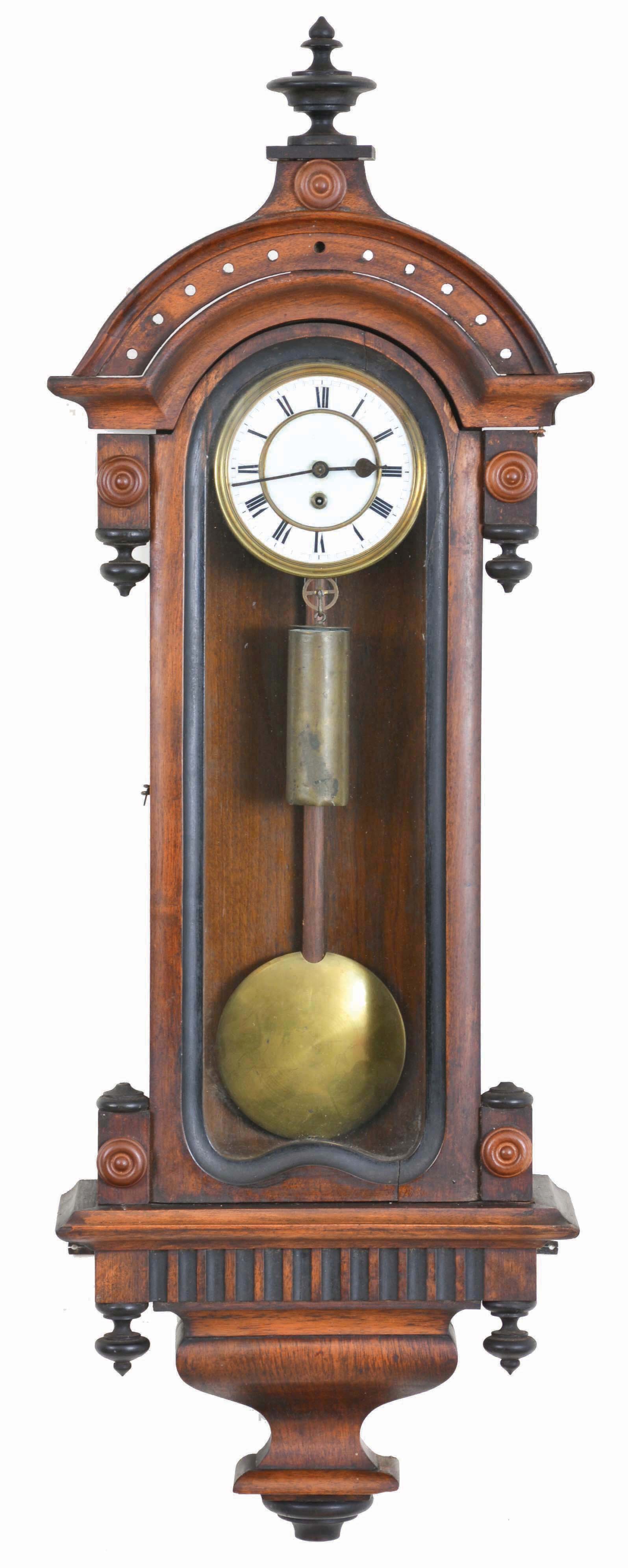 Condition Report: Walnut case in nice condition in an original finish. Dial has been repainted. There is no pendulum or calendar mechanism.