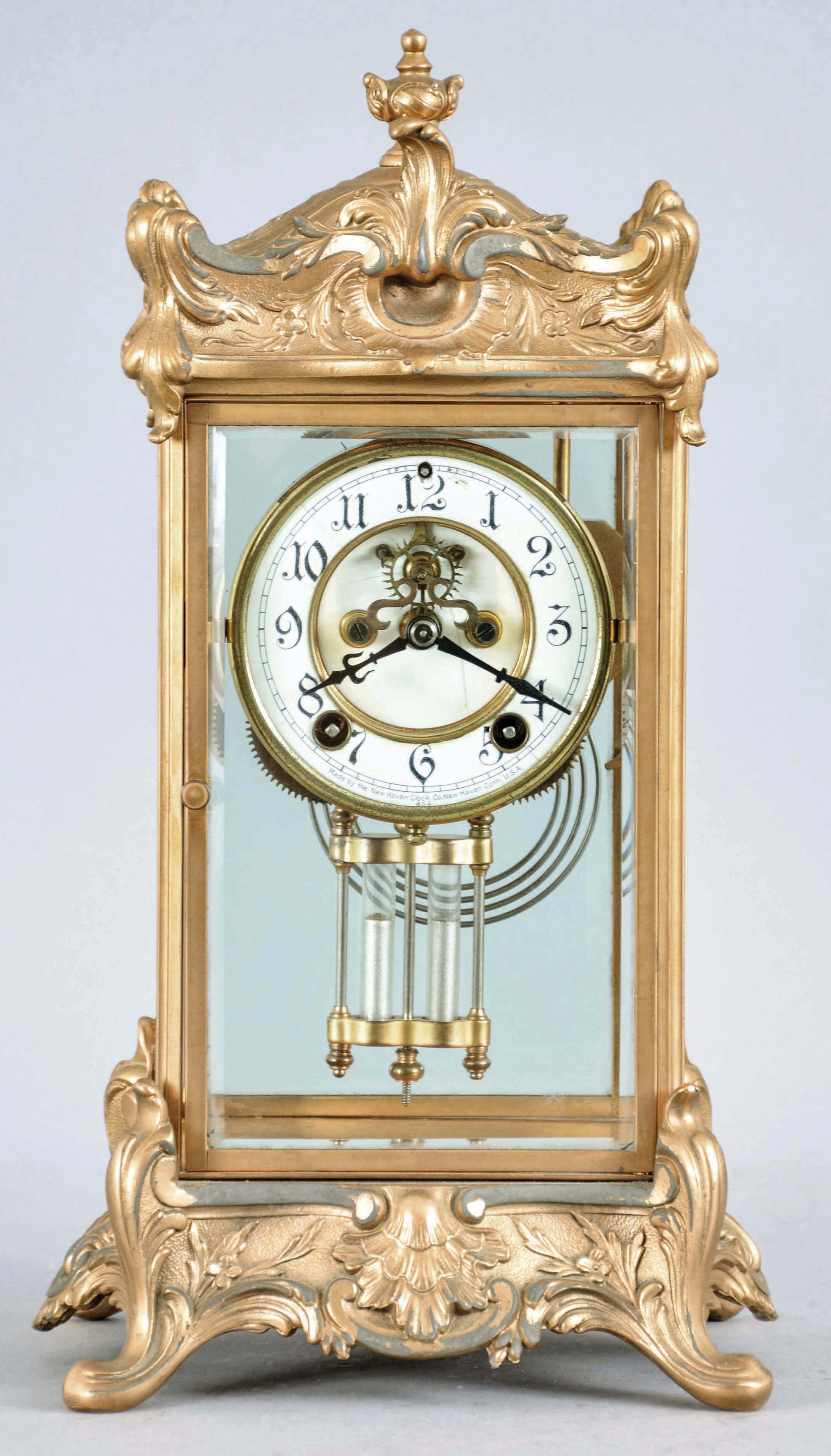Condition Report: both the sunk portion of dial and outer chapter ring have hairline cracks. Small chips around rating arbor. Beveled glasses are fine. Gilding has worn off of cast case parts exposing grey metal. Movement will need to be service. Hands and pendulum appear to be correct. Sold "as is".