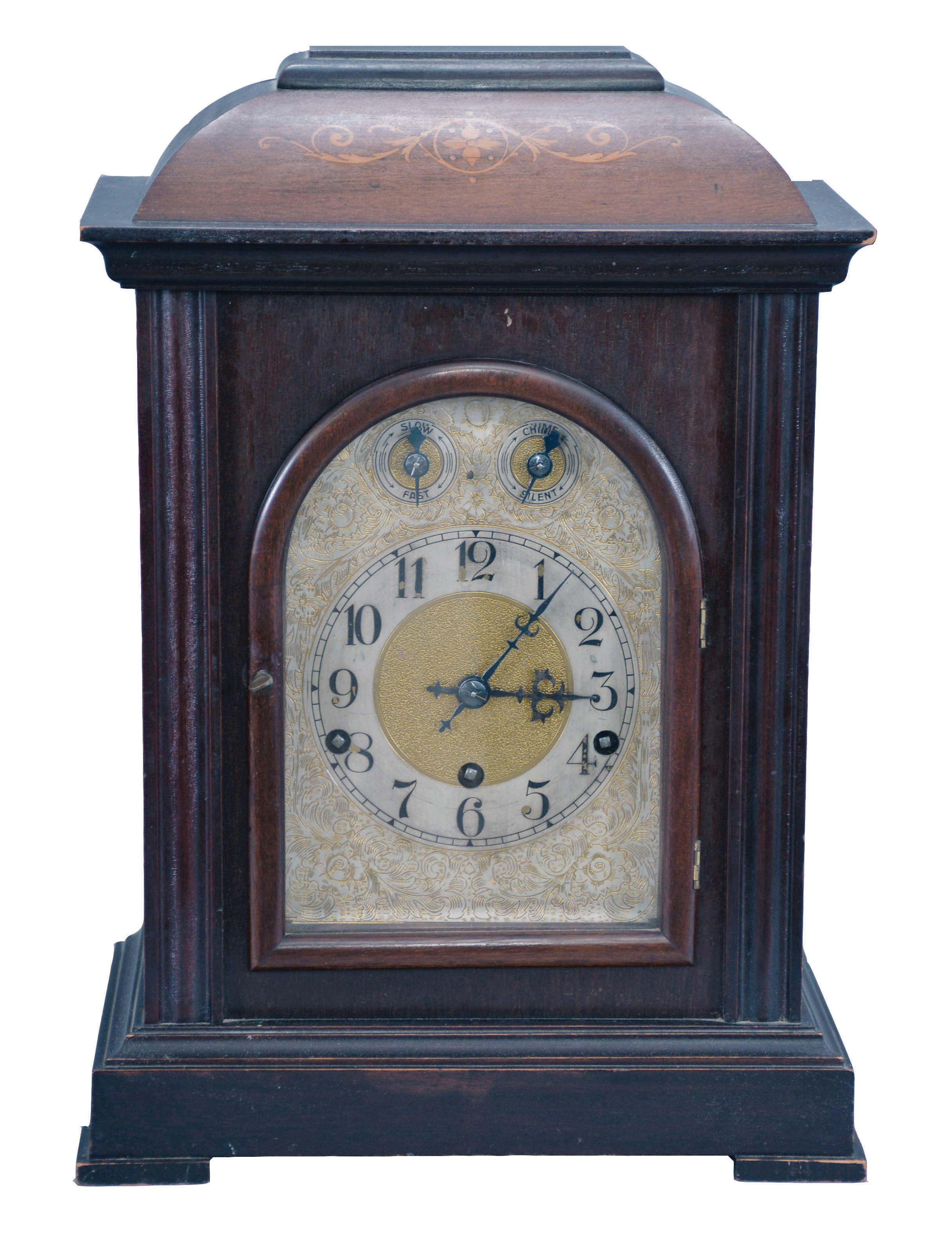 Germany, Kienzle, 8 day, time and strike, spring brass movement Westminster chime mantel clock.