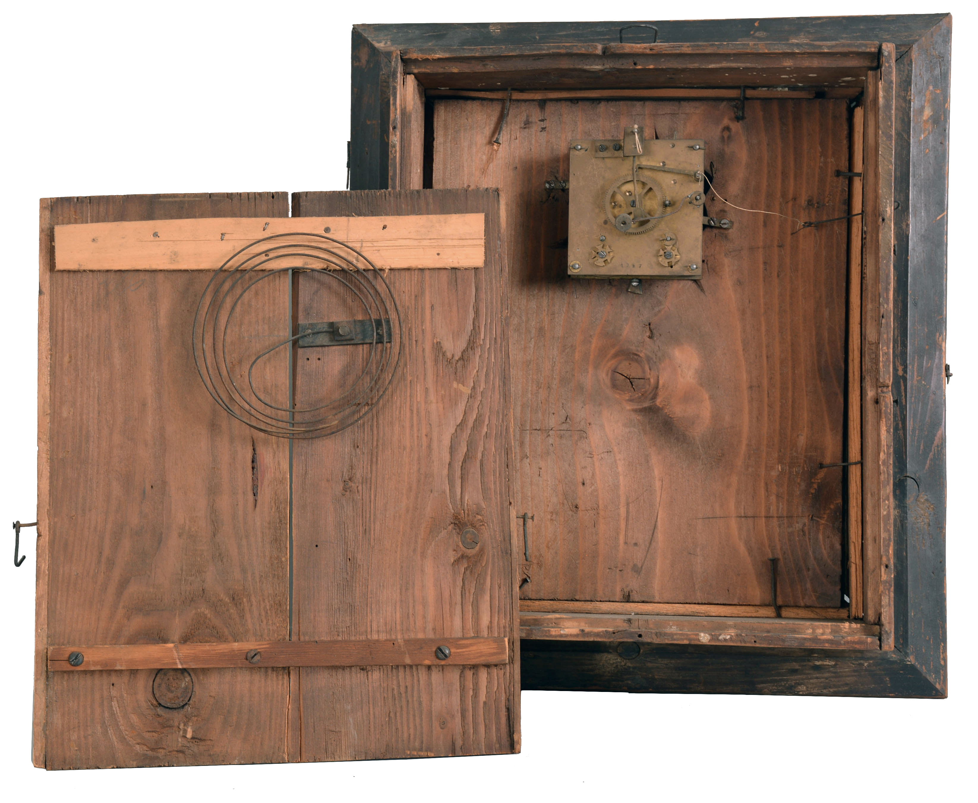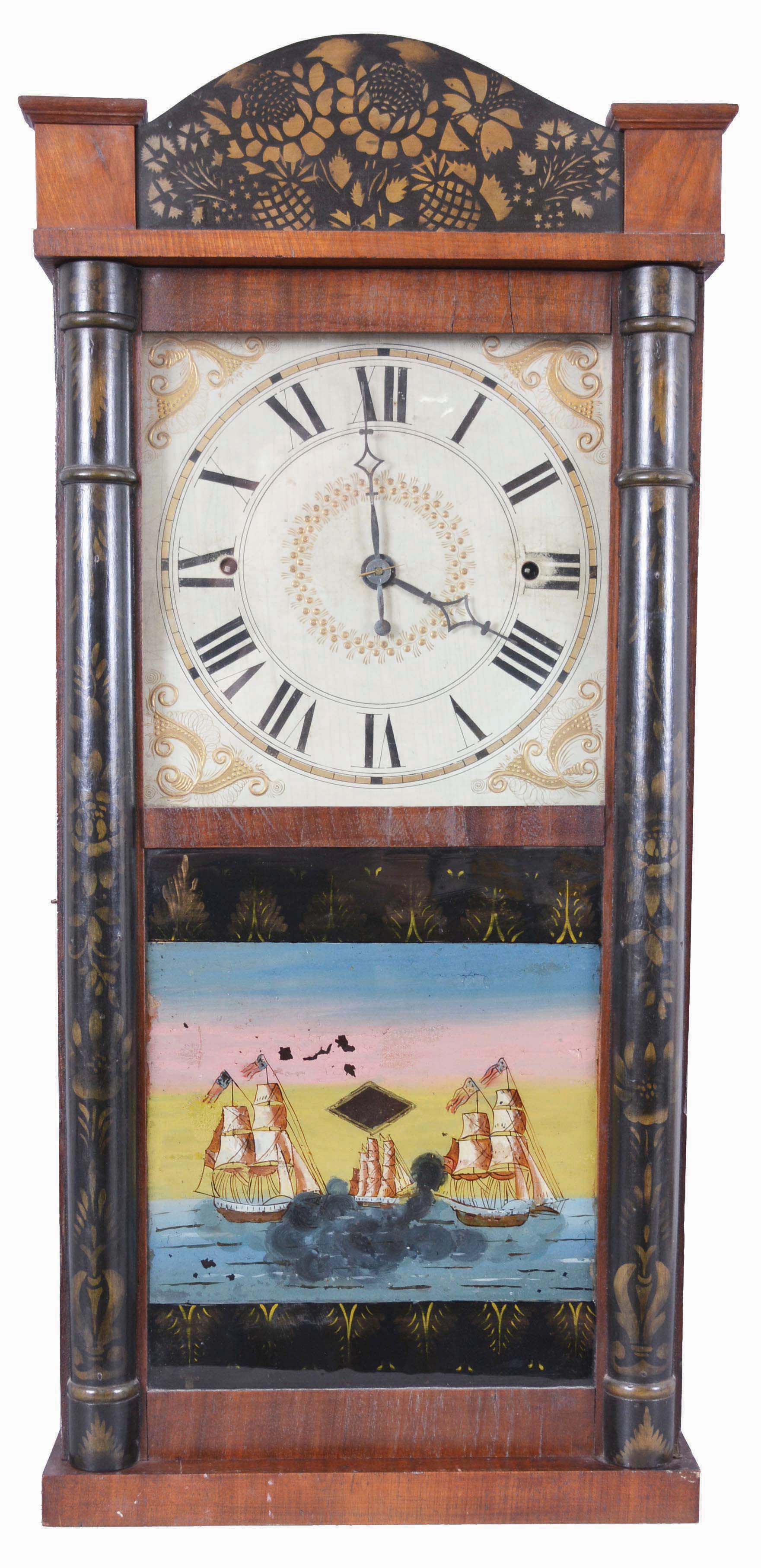 Condition Report: Case refinished, case sides probably grain-painted, numerals relined, dial cleaned, pendulum rod possibly an old replacement, original weight and hands, possibly the work of George Hatch or Horace Tifft. For additional information on these Attleboro clock makers, please see: Paul Foley, "Willard's Patent Timepieces", p. 263.