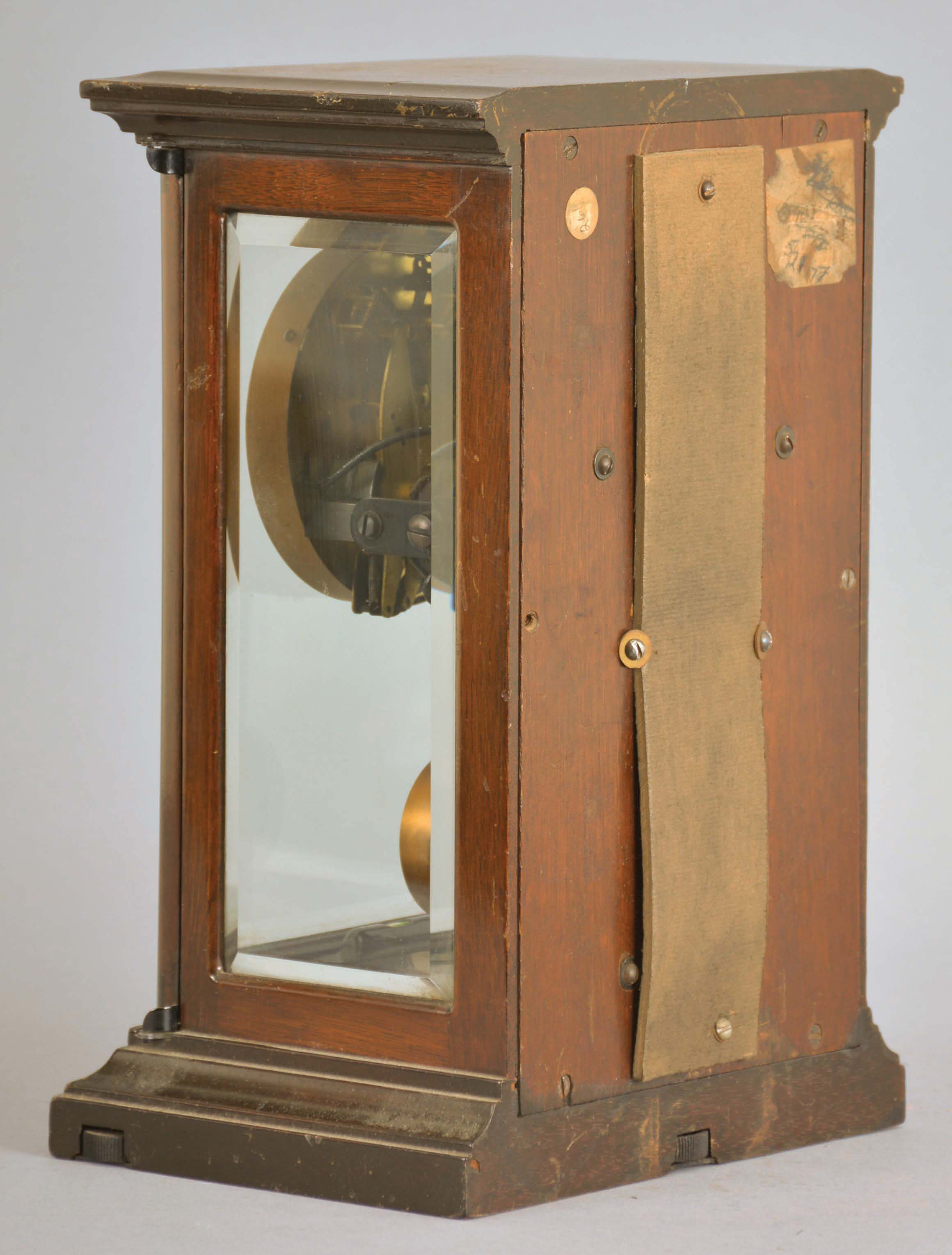 Condition Report: Refinished oak case in nice condition Original painted dial is very clean. Original hands. Movement is clean. Original supports for the dry cells are still in the case. We did not attached batteries or test the movement, but it looks complete and in good condition. The case was supplied by Seth Thomas as it is identical to a Regulator no. 30.