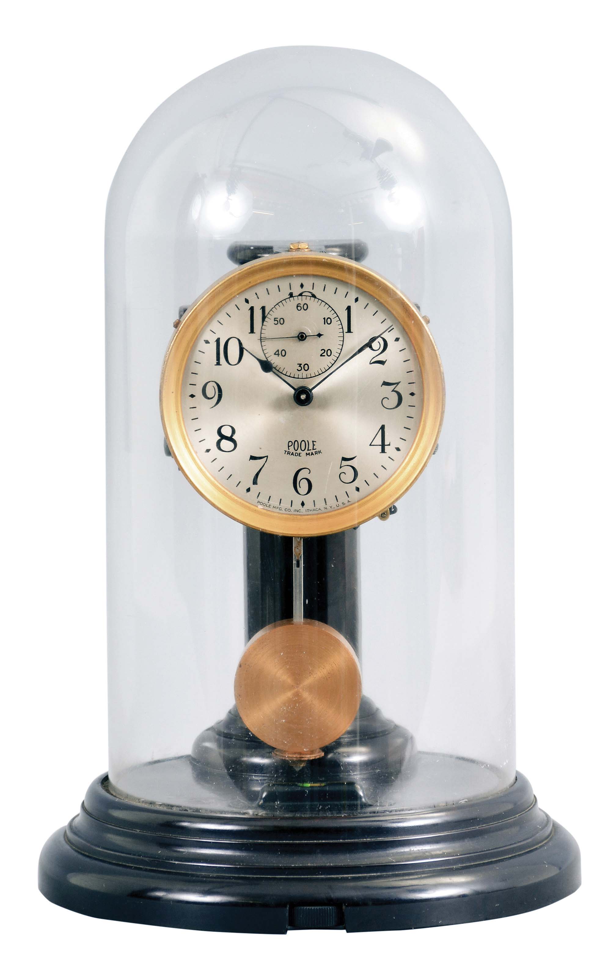 Poole Mfg. Co., Ithaca, New York, "Executive model" with "winged candlestick" bakelite battery case electric timepiece.