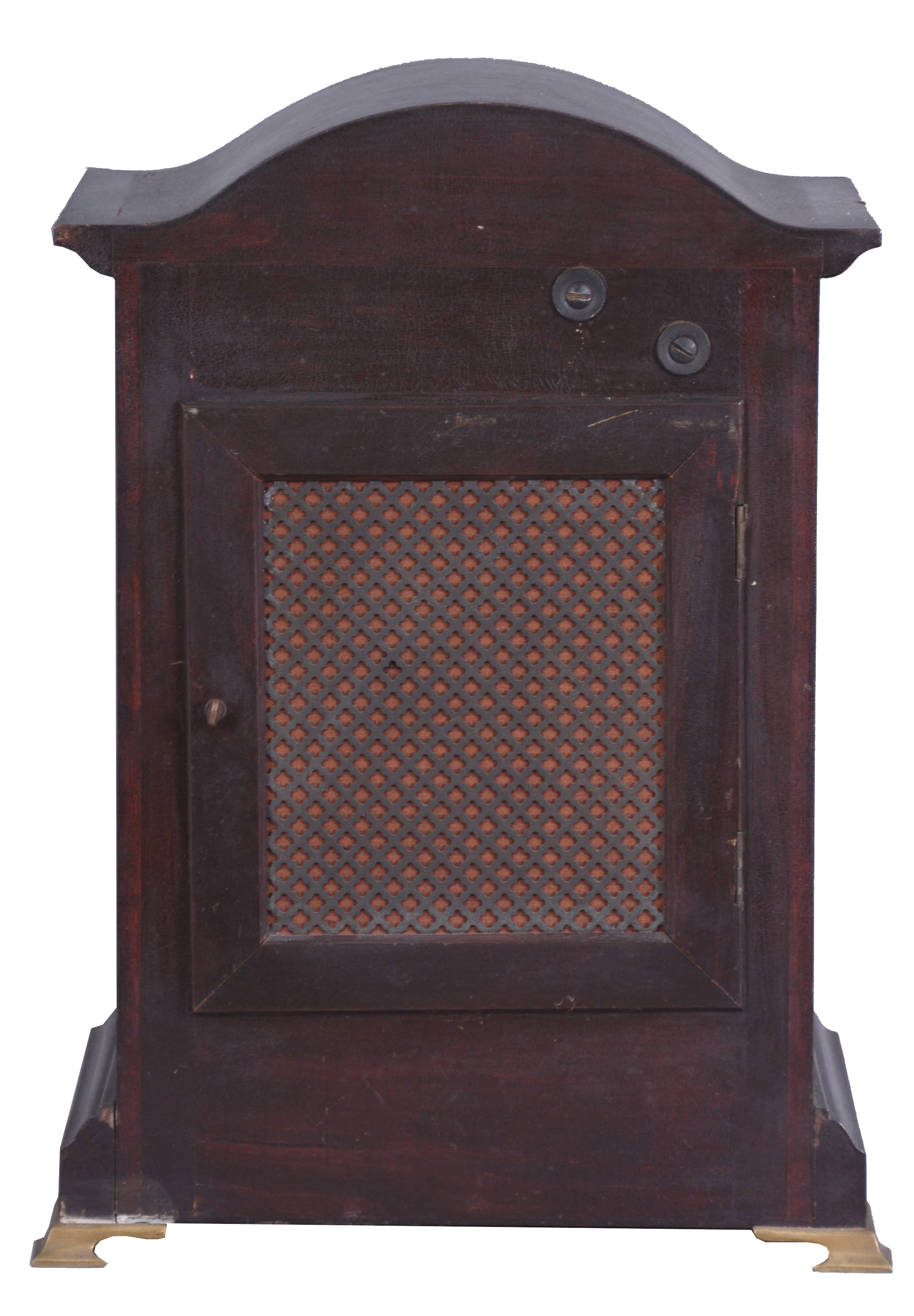 Condition Report: the frame retains its original ebonized surface with several repairs. The dial has several cracks and repairs. The glass over the dial is absent. Music box is operational.