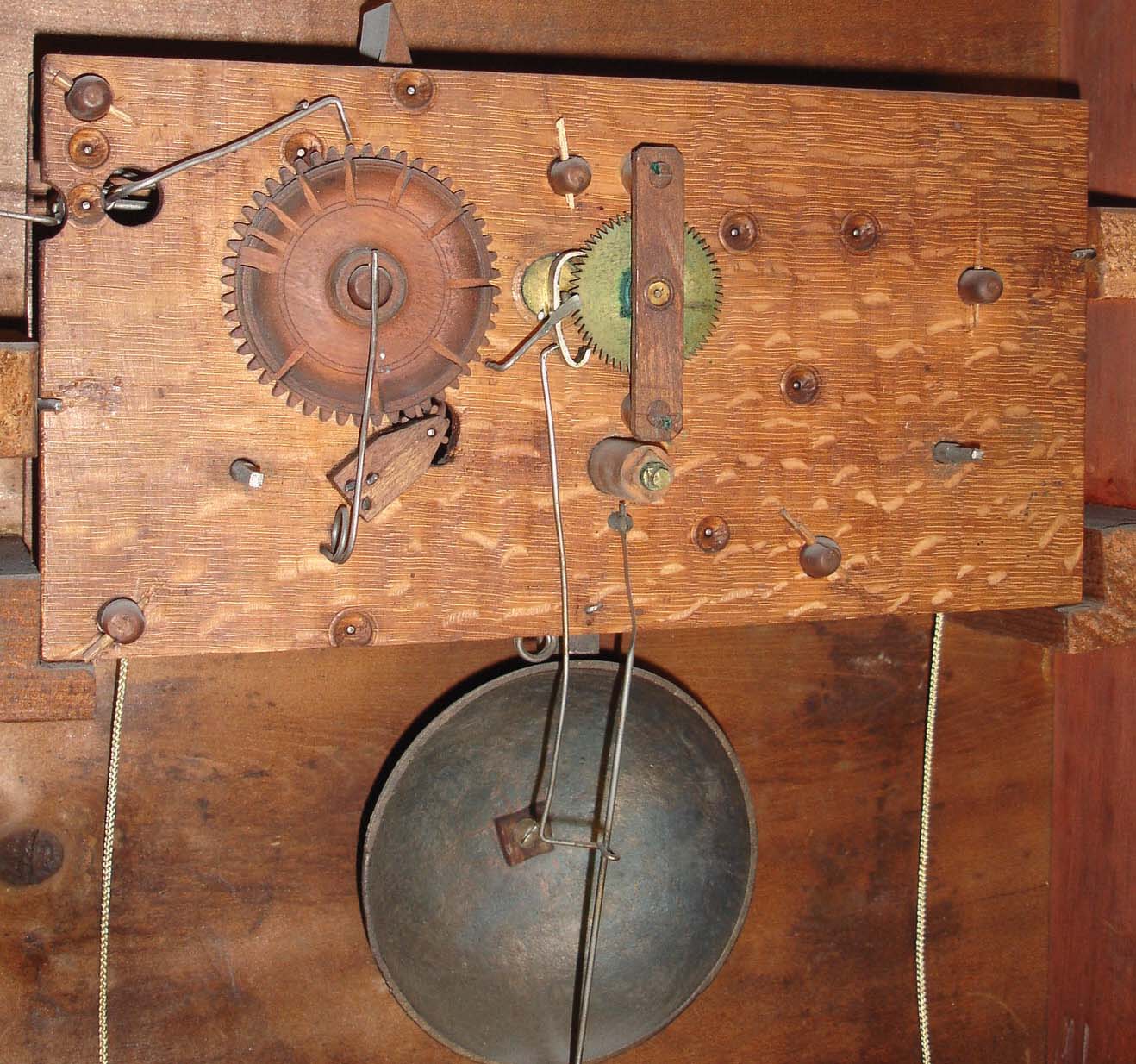 Norris North, Torrington, Conn., 30 hour, time and strike, weight wood movement column & splat shelf clock.
